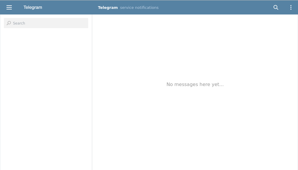 After registering for a telegram account, you will be able to access it via the web interface. A screenshot of the initial instance is shown below: