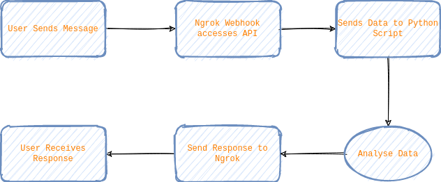 Since we are able to receive messages from the user via out Telegram bot, we will be able to interact with the data and respond accordingly. The basic process flow for the interaction is shown below: